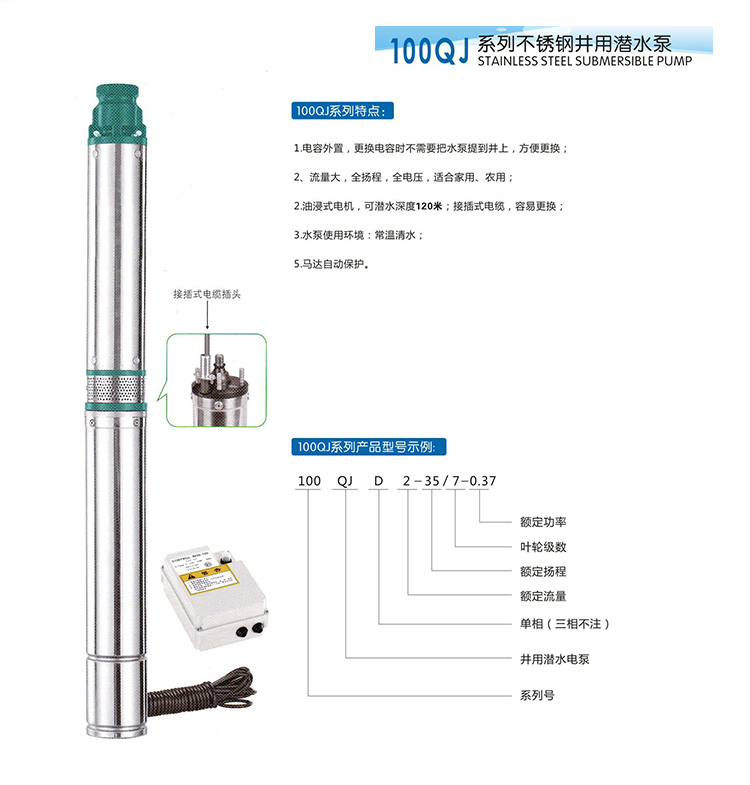 (3)QJ潛水泵的連續停機時間不得超過14天,否則,水中的雜質,沉淀在軸承和葉輪間隙內,甚至會堵住水泵轉軸。如果工作環境要求停機時間超過l 4天,應至少每1 4天開機一次,運轉5分鐘,以保證機組隨時開機使用。