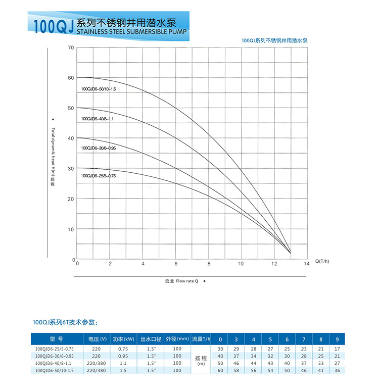 (3)QJ潛水泵的連續停機時間不得超過14天,否則,水中的雜質,沉淀在軸承和葉輪間隙內,甚至會堵住水泵轉軸。如果工作環境要求停機時間超過l 4天,應至少每1 4天開機一次,運轉5分鐘,以保證機組隨時開機使用。