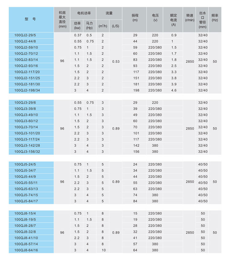 | 井用潛水泵故障 | QJ潛水泵原因 | QJ潛水泵排除方法 |