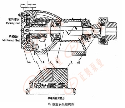 4、W型旋渦泵的密封形式有軟填料密封和單端面機械密封。除WB和WM型泵用單端面機械密封外泵出廠時一律裝軟填料密封。如用戶需要其它型式的軸封要在訂貨時說明。
