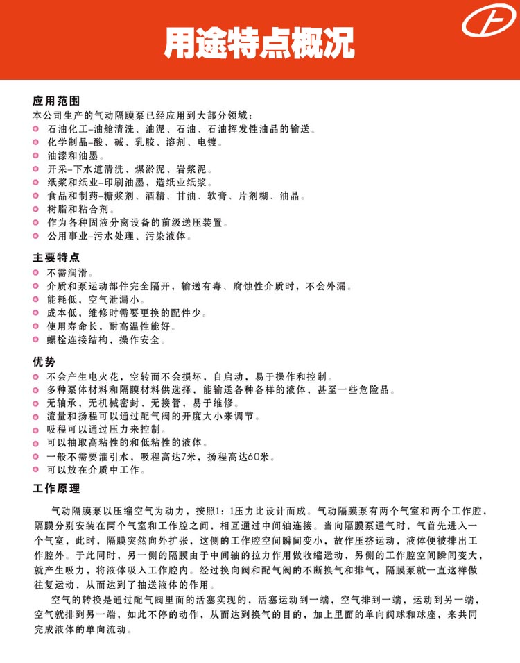 產品操作,耐腐蝕性,經久耐用,具自吸性,空轉無損,不需要加油,多種材料,用途泛,裝置簡單,