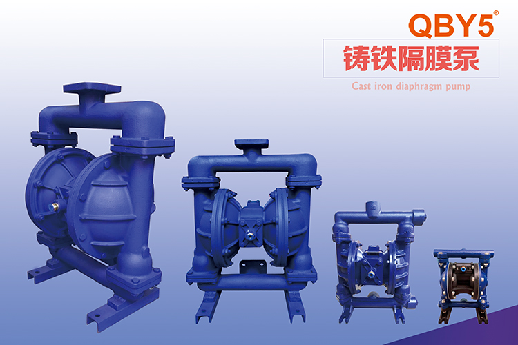 QBY5系列氣動隔膜泵工作原理:在隔膜泵的兩個對稱工作腔中,各裝有一塊有彈性的隔膜,連桿將兩塊隔膜結成一體,壓縮空氣從泵的進氣接頭進入氣閥室后,推動兩個B工作腔內的隔膜,驅動連桿聯結的隔膜同步運動。與此同時,另一工作腔中的氣體則從其隔膜的背面排出泵外。當活塞達到行程終點,閥機構則自動的將壓縮空氣引入另一工作腔,推動隔膜泵朝反向運動,這樣就形成了兩個隔膜的現步往復運動。每個工作腔中又設置兩個單向球閥,隔膜的往復運動,造成工作腔內容積的改變,迫使兩個單向球閥交替的開啟和關閉,從而使液體連續的吸入和排出。
