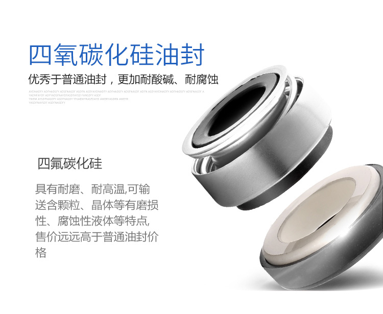 3、軸封采用機(jī)械密封或機(jī)械密封的組合,采用硬質(zhì)合金密封環(huán),增強(qiáng)了密封的耐磨性,能有效地延長(zhǎng)泵的使用壽命。