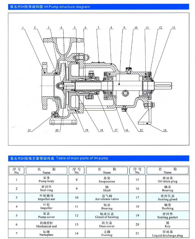 第五代IH型不銹鋼化工流程泵軸封形式:根據用戶需要可分別選用填料密封、單端面非平面衡機封、雙端面非平衡型機封、雙端面平衡機封等。密封安全、可靠、使用壽命長。