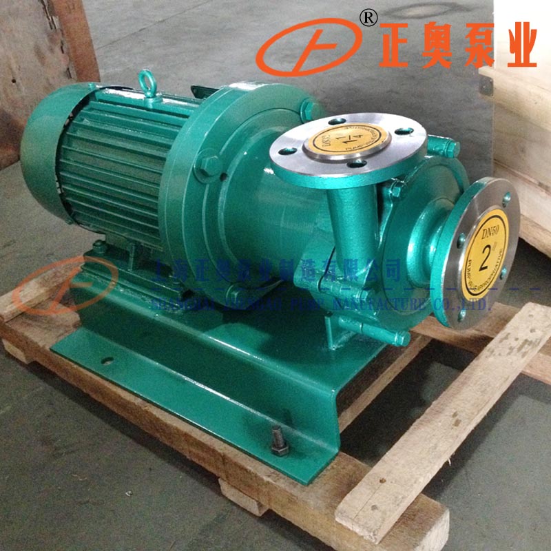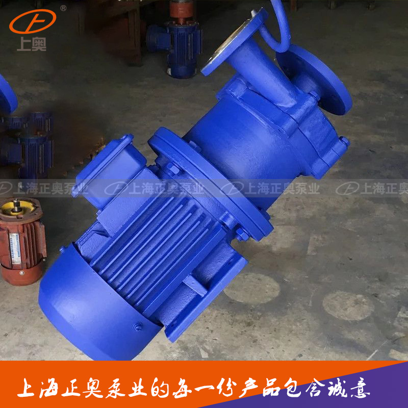 四、安裝和使用 1.磁力泵應水平安裝,不宜豎立,塑料泵體不得承受管路重量,對于特殊要求垂直安裝的場合,電機務必朝上。 2.當抽吸液面高于泵軸心線時,起動前打開吸入管道閥門即可,若抽吸液面低于泵軸收線時,管道需配備底閥。 3.泵使用前應進行檢查,電機風葉轉動要靈活,無卡住及異賞聲響,各緊固件要緊固。 4.檢查電機旋轉方向是否與磁力泵轉向標記一致。 5.電機啟動后,緩慢打開排出閥,待泵進入正常工作狀態后,再將排出閥調到所需開度。 6.泵停止工作前,應先關閉排出閥門,然后關閉吸入管閥門。五、使用注意事項 1.因磁力泵軸承的冷卻和潤滑是靠被輸送的介質,所以絕對禁止空運轉,同時避免在工作中途停電后再啟動時所造成吋空載運轉。 2.被輸送介質中,若含有固體顆粒,泵入口要加過濾網:如含有鐵磁質微粒.需加磁性過濾器。 3.泵在使用中環境溫度應小于40℃ ,電機溫升不得超過75℃ 。 4.被輸送的介質及其溫度應在泵材允許范圍內。工程塑料泵的使用溫度〈60℃,金屬泵的使用溫度〈100℃,輔送吸入壓力不大于0.2MPa,最大工作壓力1.6MPa、密度不大于1600^kg/m3,,粒度不大于30 X 10-6㎡/S的不含硬顆粒和纖維的液體。 5.對于輸送液為易沉淀結晶的介質,使用后應及吋清洗,排凈泵內積液。 6.磁力泵運行500小時后,應拆檢軸承和端面動環的磨損惰況,若軸承和軸套的間隙大于0.5~1mm,葉輪軸向竄動1. 5~2mm時,應更換軸承和軸向動環。