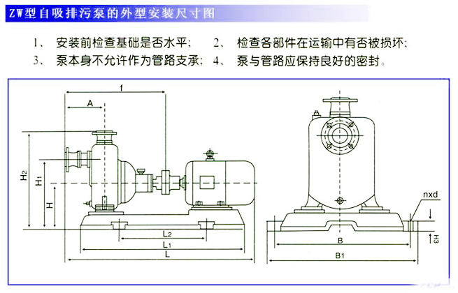 ZW型自吸式無堵塞排污泵既可象一般清水自吸泵那樣不需安裝底閥,不需灌引水,又可抽吸含有大顆粒固體直徑為出口口徑的60%和纖維長度為葉輪直徑1.5倍的污物、沉淀物、廢礦雜質、糞便處理及一切工程污水物和膠質液體,完全減輕人力的勞動強度,而且安裝使用方便,極少維修,性能達到國際先進水平,具有廣闊的應用市場和發展前景
