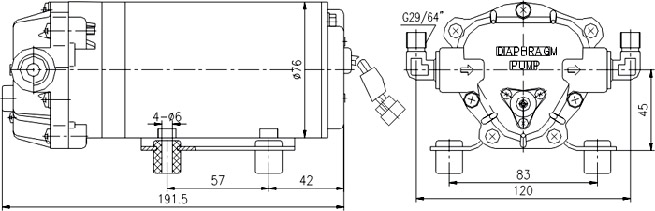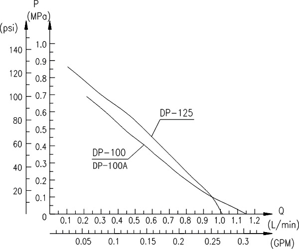 2.裝有隨泵附帶的進出口接頭,DP-130 DP-125 DP-100 DP-60型隔膜泵進出口采用ZG3/8″外牙G29/64″彎管接頭;DP-35隔膜泵進出口采用3/8″外牙軟管接頭.