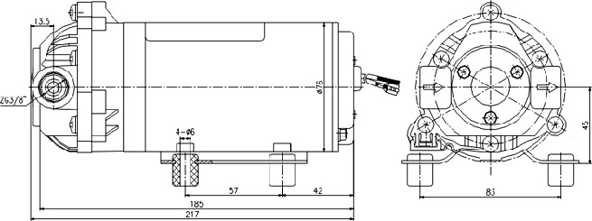 注2:“吸程”也叫“大自吸高度”。即泵在不加引水的情況下,能自動將水吸上來的大高度(泵抽水口距離待抽液面的垂直距離)。微型電動隔膜泵是自吸水泵,所標吸程均指這種情況。有些離心式的水泵就沒有自吸能力,次使用必須加引水才行。有的隔膜水泵雖然也有自吸能力,但標的“吸程”往往與“進水管里全部是空氣”下能抽起水的垂直高度有差距,這點請注意。