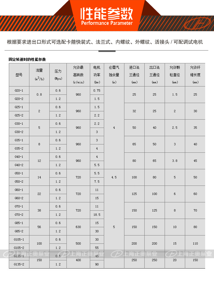 型號 壓力0.8Mpa 壓力1.2Mpa 可調轉數