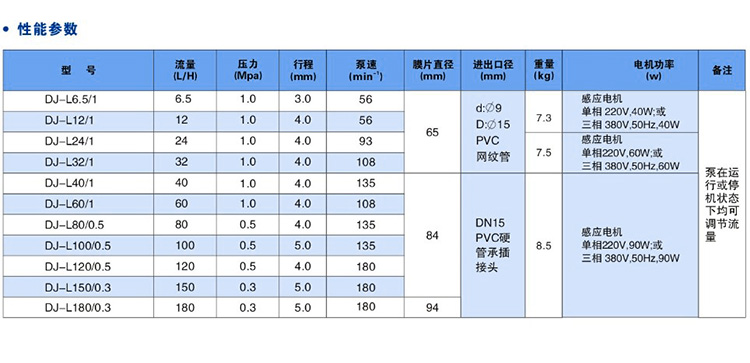 三、DJ-L型隔膜式計量泵技術(shù)參數(shù):