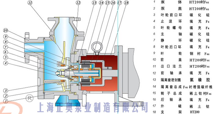 ZMD系列自吸式磁力泵,集合了磁力泵的所有優良特性,且優勢即可以自吸,一般自吸高度可達2-4米,充 分結合了自吸泵和磁力泵的所有優點,既具有自吸功能,又取消了軸封,利用磁力偶合間接傳動,完全消除了滴漏的現象。是輸送易燃、易爆、易揮發、強腐蝕、強 滲透性高危化學介質理想的選擇。根據所輸送介質的特性,如介質比重、腐蝕性等可選用不用材質的泵主軸材料,如輸送氫**酸和有機溶劑可選用無壓燒結碳化硅 主軸或99.99%氧化鋁陶瓷主軸。ZMD系列磁力驅動泵采用新材料制成的隔離套具有高強度的力學性能,消除了一般磁力泵具有的磁渦流現象。 ZMD系列磁力驅動泵采用獨特的后拉式結構,整機過流部分只有5個部件總成組合而成,一人便可以很輕松地進行內部檢修和零件更換,無需拆卸管道,大大方便了日常的檢修和保養工作。