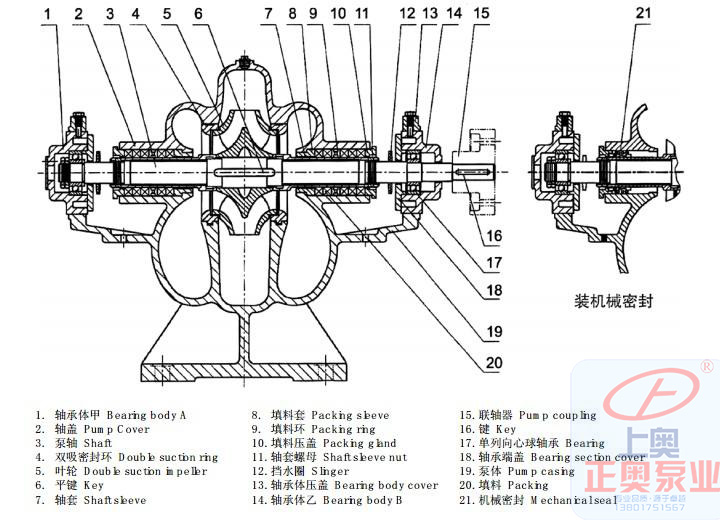 單級雙吸中開泵結構圖