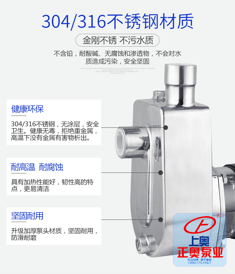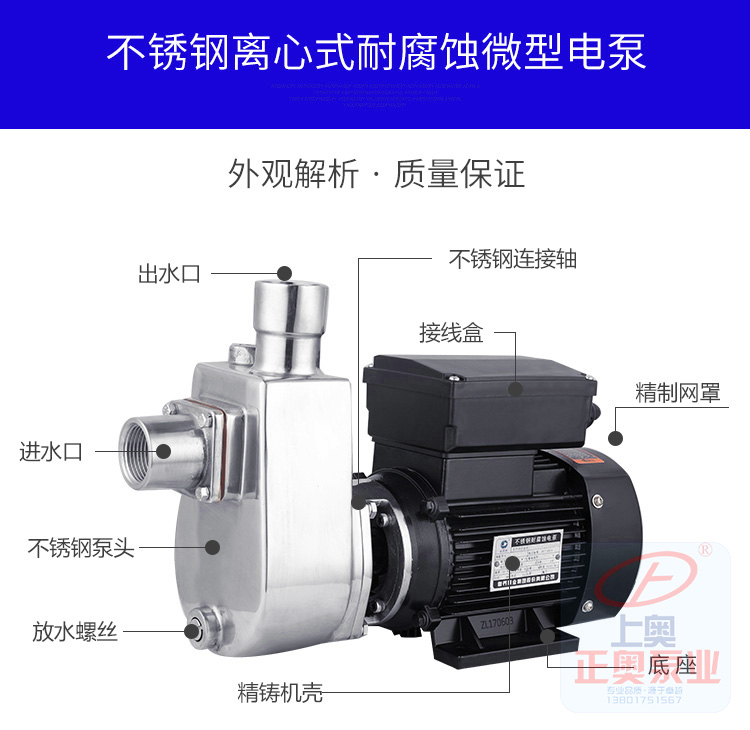 不銹鋼自吸式耐腐蝕離心泵可輸送溫度不高于103℃,含有細小軟顆粒或纖維質,帶腐蝕性或有衛生要求的液體,廣泛適用于食品、飲料、醫藥、污水處理、化工、電鍍、漂染、精細化工等行業使用。