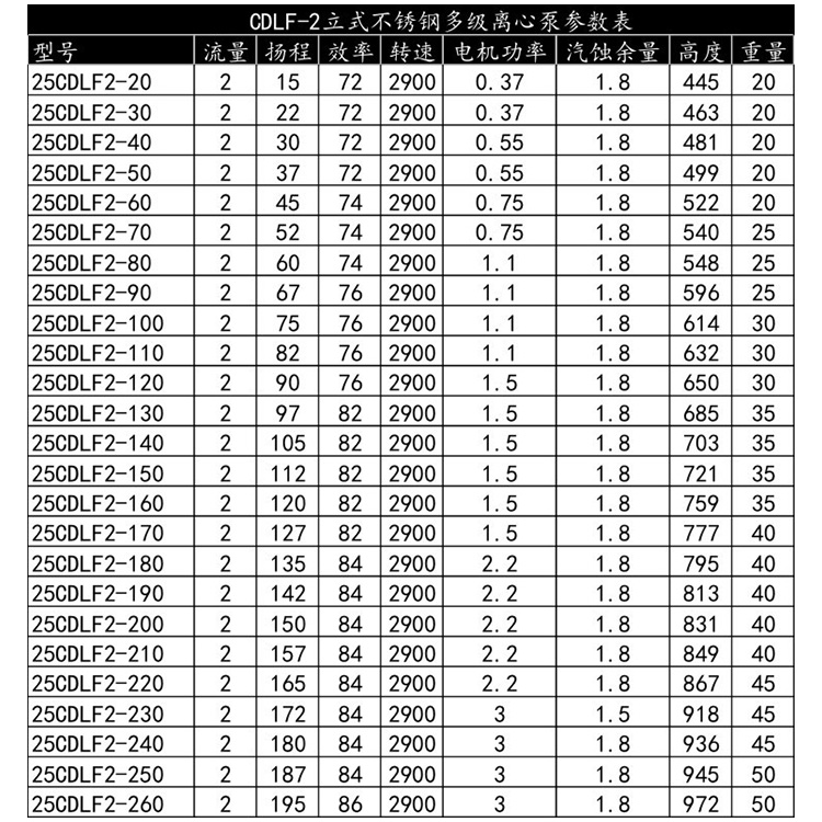 CDLF-2不銹鋼立式多級泵性能參數選型
