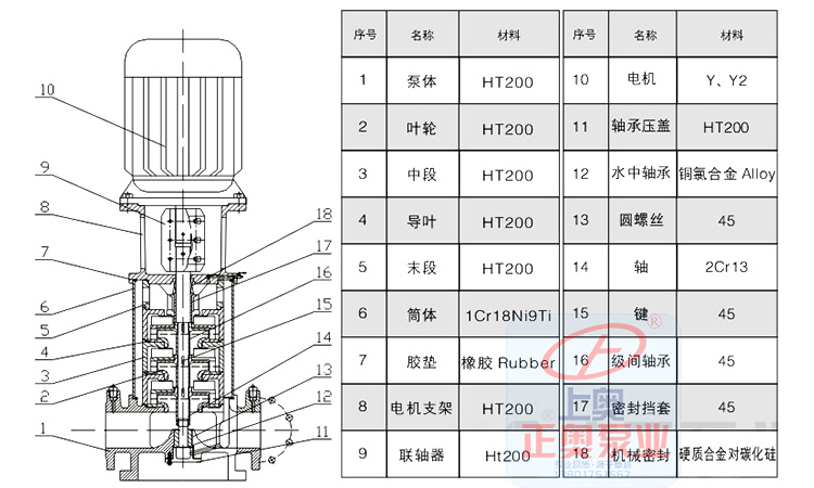 3、該不銹鋼多級泵的過流部分采用不銹鋼板沖壓焊接而成,使得泵可適用于輕度腐蝕性介質(zhì)。