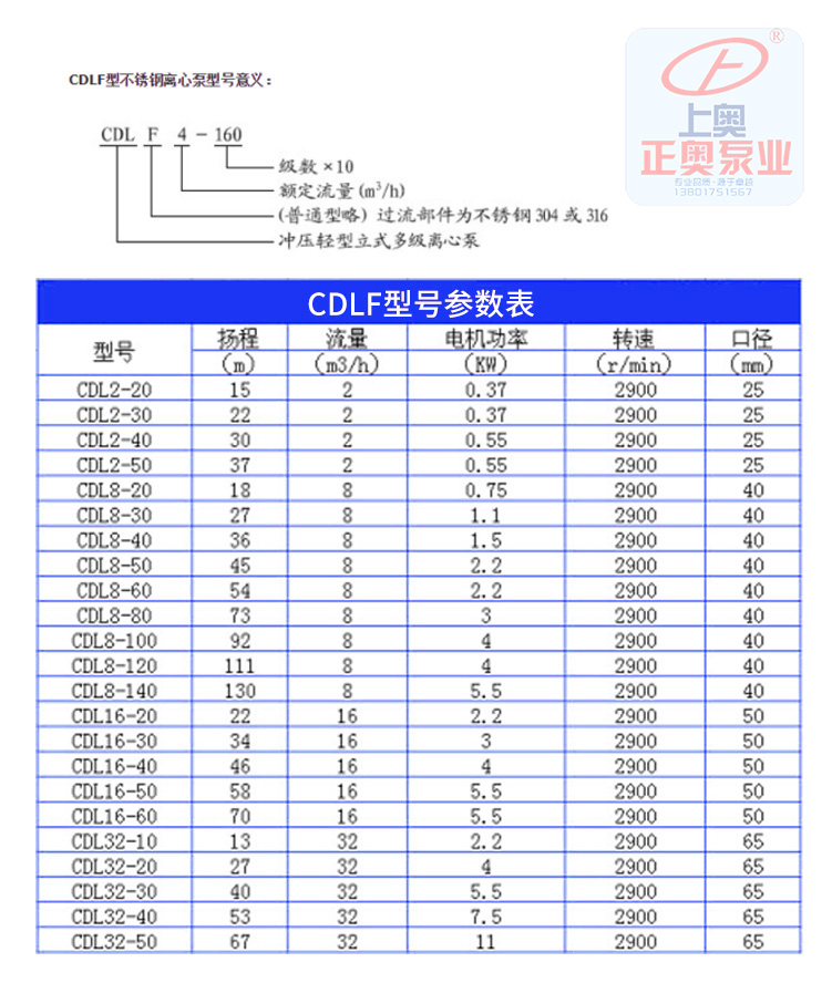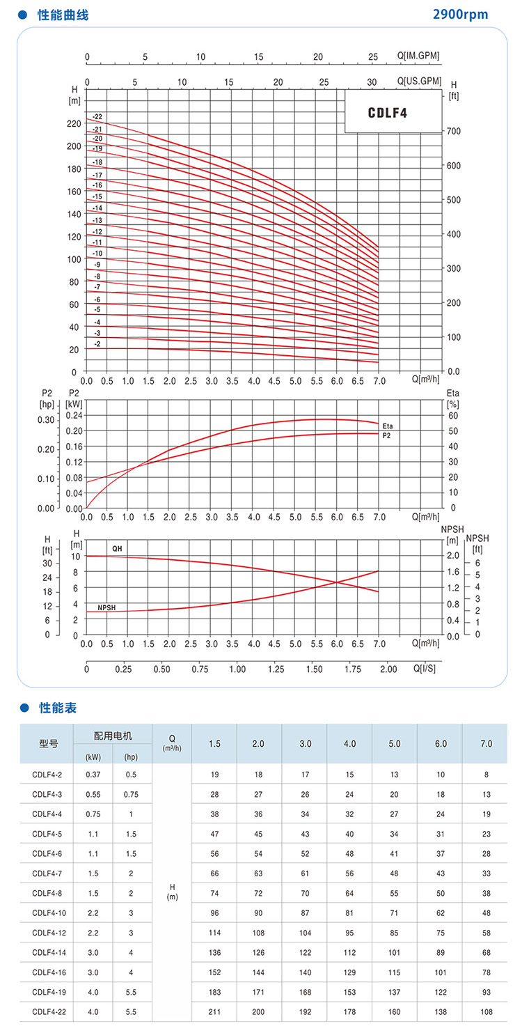 CDLF-4不銹鋼立式多級泵性能參數(shù)選型:
